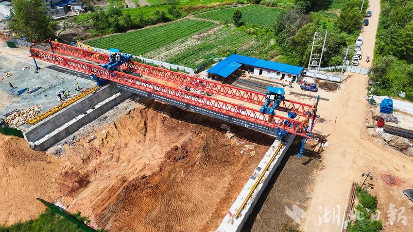 湖北日报客户端讯(通讯员陶然 邹辉 甘源 吴文君)8月15日,崇阳县白泉陆水河大桥项目首片40米预制T型梁成功架设,标志着大桥建设迈入新的攻坚阶段。作为当地重要的交通枢纽工程,大桥建成后将进一步打通天城镇南北交通脉络,为区域经济社会发展注入强劲动力。县政协副主席、县交通运输局局长孙文甫现场指导工作。