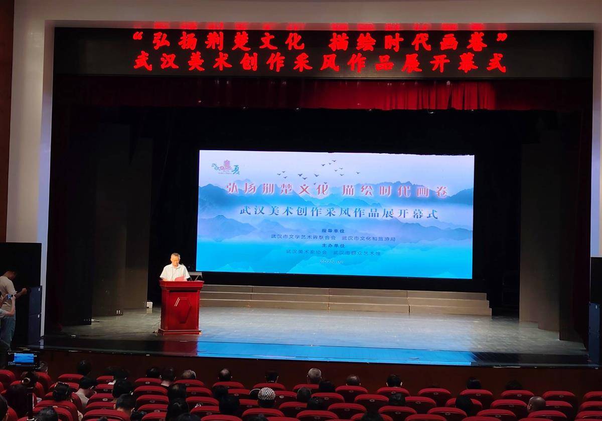 本次展览由武汉市文联、武汉市文化和旅游局指导,武汉美术家协会、武汉市群众艺术馆共同主办。当日展览开幕式后,还举办了“2025武汉美术创作能力提升培训”专题讲座,湖北美术学院教授、武汉美术家协会主席沈伟结合艺术实践与理论研究与本次采风作品展作品,为观众带来一场关于美术创作与时代精神的精彩讲座。