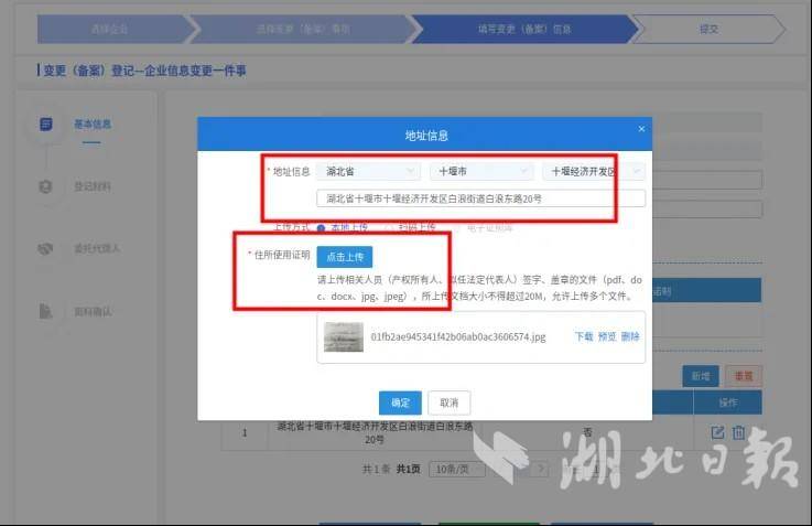 4、在此页面输入地址信息以及上传住所证明后点击确定跳转至下一步;