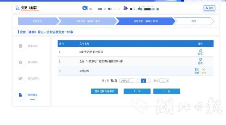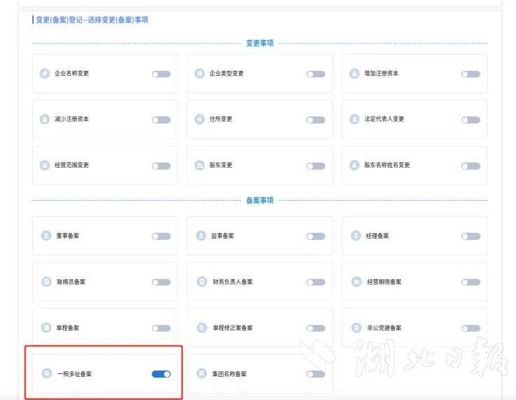 3、在变更(备案)登记页面选择一照多址备案后进行后续填报;
