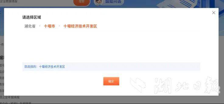 2、选择行政区划湖北省-十堰市-十堰经济技术开发区点击确认跳转后进行操作;