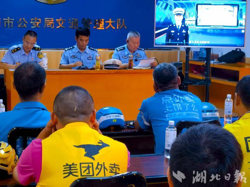 湖北日报客户端讯( 通讯员 程德国)近年来,外卖、快递在给生活带来便利的同时,也出现了一系列交通问题。为推进城市道路交通畅通,全面提升快递、即时配送人员的交通安全意识,切实预防道路交通事故,8月13日上午,丹江口市公安局交管大队联合交通综合执法大队组织辖区所有即时配送行业及快递业员工,在交管大队二楼视频会议室开展交通安全教育活动,通过播放警示片、发放宣传册、有奖答题和赠送头盔等形式,普及交通安全知识。当天饿了么、美团等企业员工代表50余名参加活动。