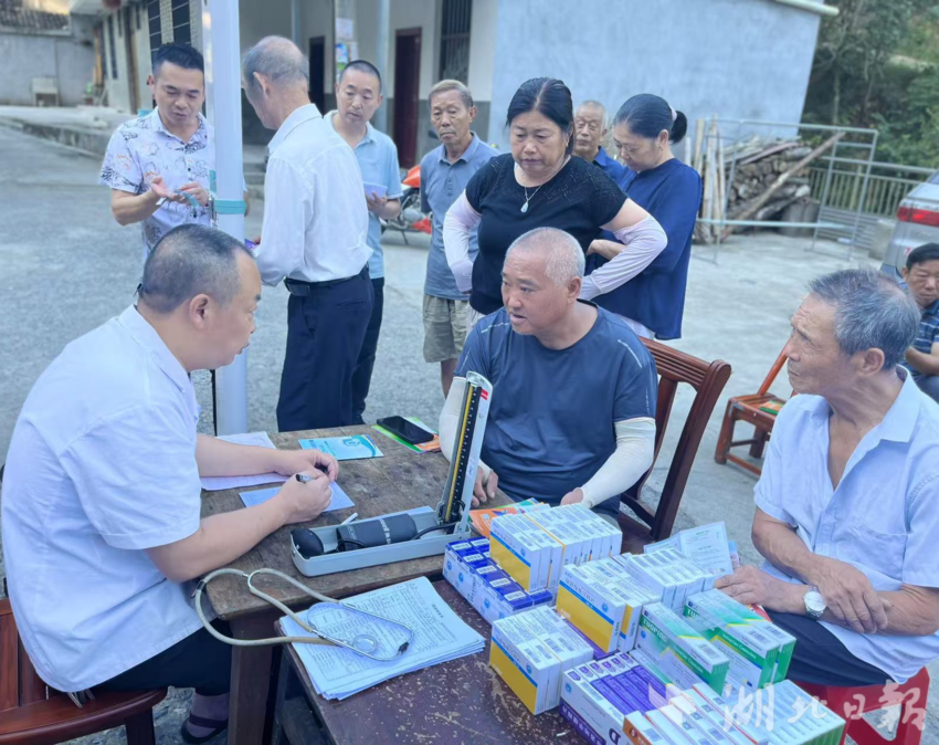 湖北日报客户端讯(通讯员范瑶)8月19日,崇阳县金塘镇卫生院大源卫生所到金塘镇正源村开展义诊活动,将优质医疗服务送到百姓家门口。