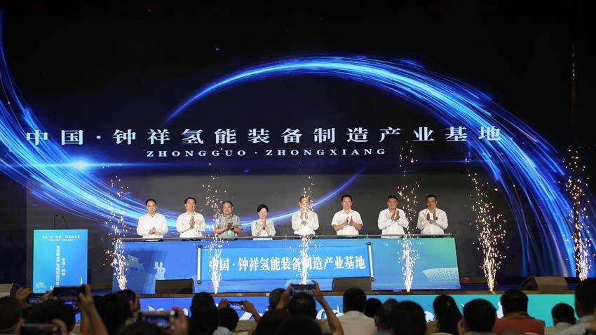 会上,荆门市委书记胡亚波、省商务厅厅长龙小红与专家学者、龙头企业共同为钟祥氢能装备产业基地揭牌。钟祥将联合四川大学、武汉理工大学、英特利等高校和企业,共同建设氢能装备产业技术研究院,聚焦电解水制氢电气系统、电解槽核心零部件等进行核心技术攻关,并建设氢能装备研发测试中心、中试基地,开展技术验证和产业化服务。