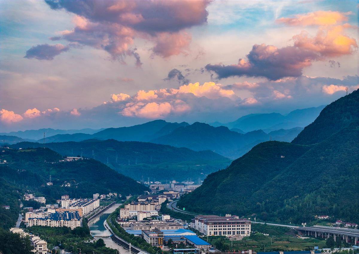 夕阳西下,天边如同打翻了调色盘。8月19日,一场绚丽的晚霞盛宴在保康县城上空如期而至。从高空俯瞰,霞光泼洒而下,为这座灵秀山城披上了一件华美的霓裳。