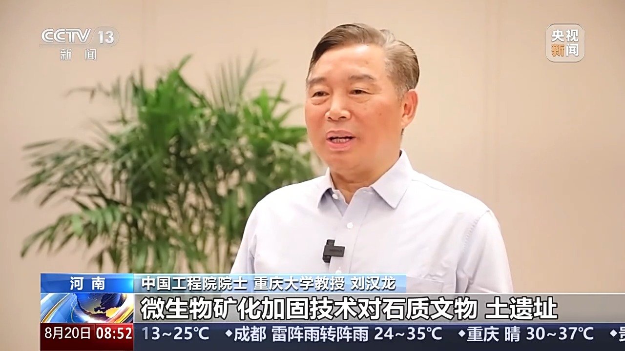 中国工程院院士 重庆大学教授 刘汉龙:通过大量实验,团队验证了微生物矿化加固技术对石质文物、土遗址和可移动文物等修复的有效性和实用性,并且具有兼容性好、强度高、耐候性强、绿色环保等优势。