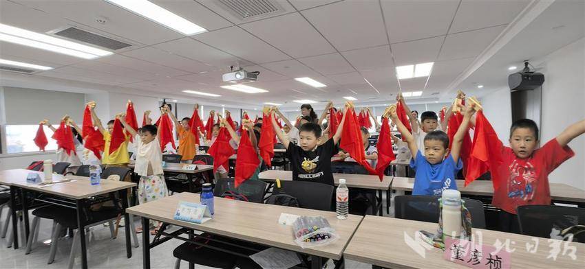 近日,在松滋市杨林市镇跑马岗村的阳光驿站,几位爱心妈妈志愿者以南昌起义为起点,讲述建军节的由来。在现场,孩子们用彩色画笔描绘出心中的军人形象。志愿者还带着孩子们一起观看历史剧《南昌起义》,感受军人浴血奋战的勇猛和英勇无畏的抗战精神。沉浸式的红色主题教育,让孩子们牢记历史,将爱国情怀内化于心,外化于行。