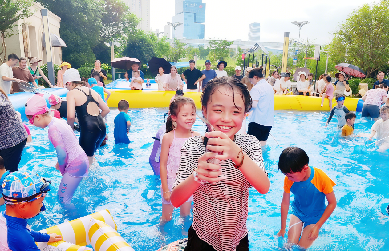 盛夏欢愉的方程式,“玩水”永居核心项。当热浪席卷,金科服务早已为业主们备好一汪“清凉港湾”。泡泡派对、捕鱼游戏、水枪大战、泳池运动轮番上阵,让业主足不出区尽享夏日乐趣。