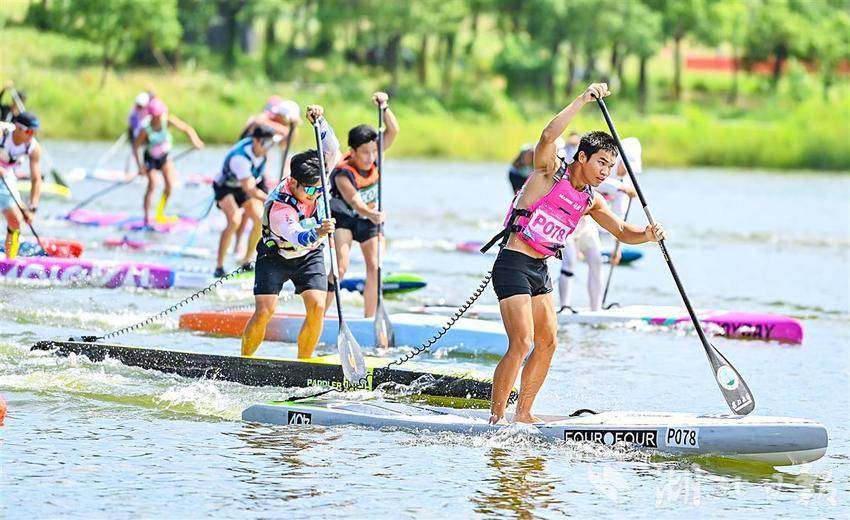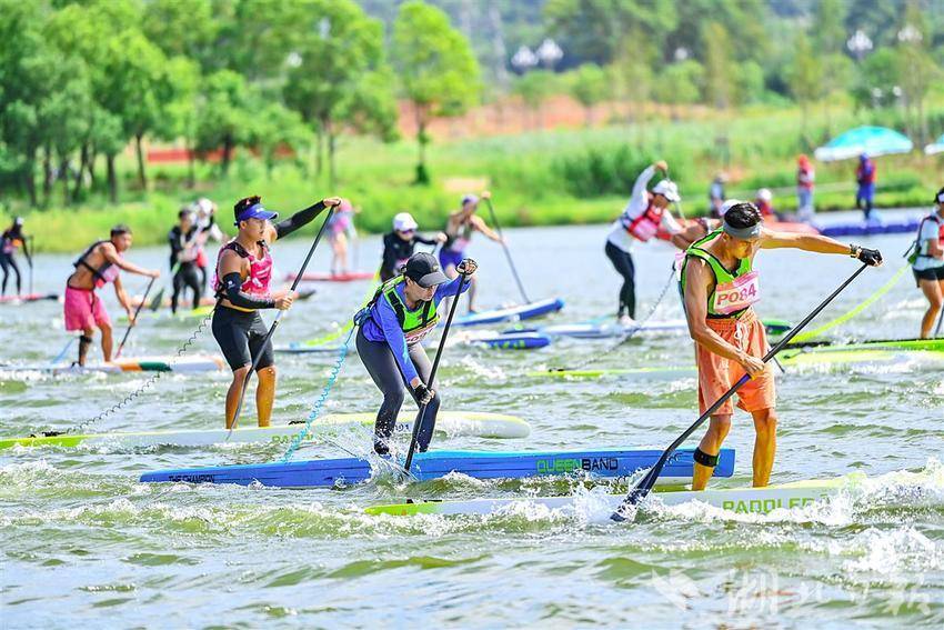 8月23日,2025湖北省桨板公开赛江夏站在武汉市江夏区郑店街道凤栖湖水域拉开帷幕,吸引了约300名省内外桨板高手参赛。