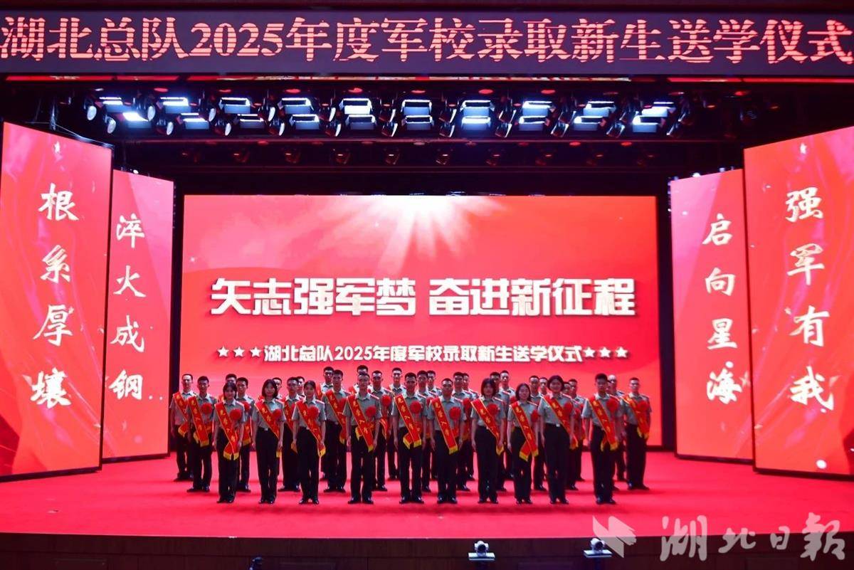 近日,武警湖北总队全体官兵齐聚一堂,为160名即将奔赴军队院校的新生举行欢送仪式。