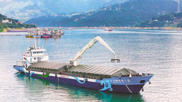 8月20日,国内首艘4E级纯电动清漂转运船“三峡护坝1号”在三峡库区水域试航,将主要用于清理、接收和转运三峡库区水上漂浮物。