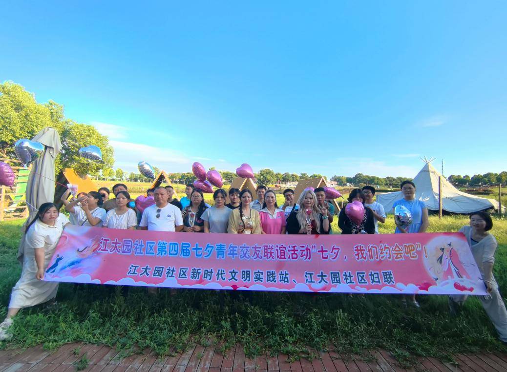 湖北日报讯(通讯员杨苗)七夕如梦,佳期如约。8月23日,由武汉经开区沌阳街道江大园社区新时代文明实践站与社区妇联联合主办的第四届七夕青年交友联谊活动,在风景如画的花博汇浪漫上演。