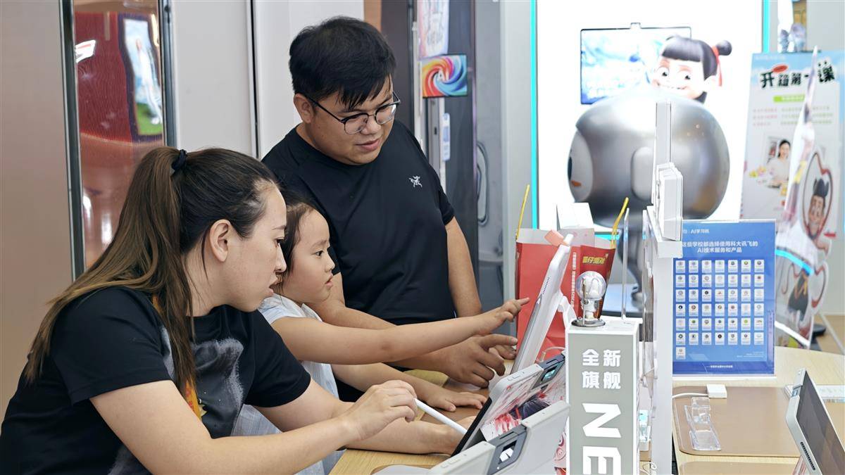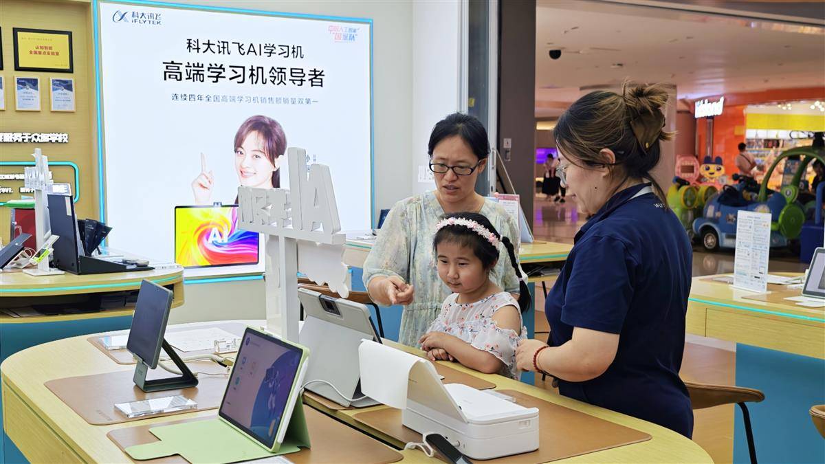 8月25日,科大讯飞武汉梦时代店迎来不少学生和家长。临近新学期,学生和家长们纷纷聚焦AI学习设备,搭载“大模型”的新款AI学习机尤为亮眼。店员张茜透露,近期销量同比增长显著,“许多家长看中它能通过AI大模型定制个性化学习方案,像私教一样精准辅导孩子薄弱环节。”