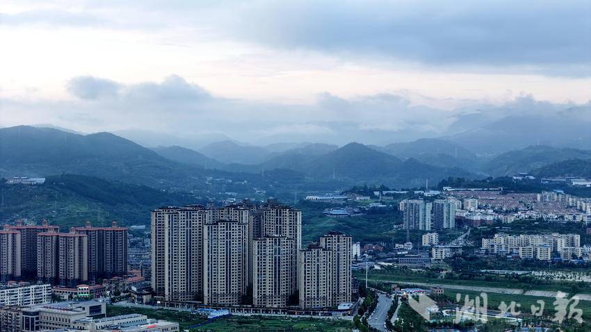 雨后初霁,郧阳城区汉江两岸远山云遮雾绕,近水清澈如镜,城市浮在水上,美不胜收。