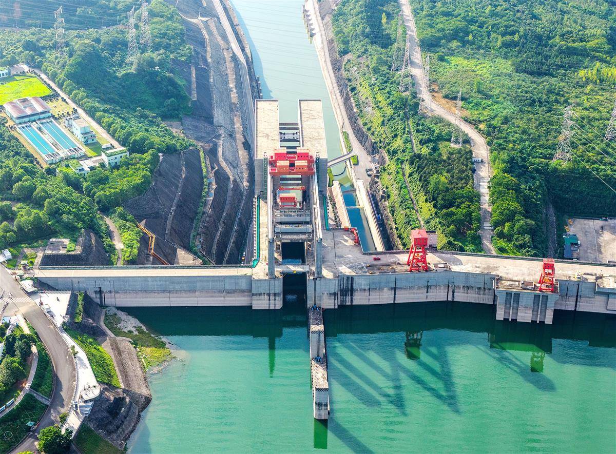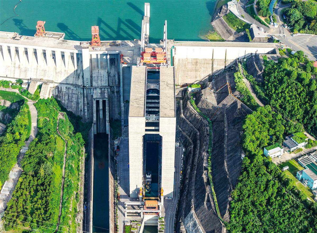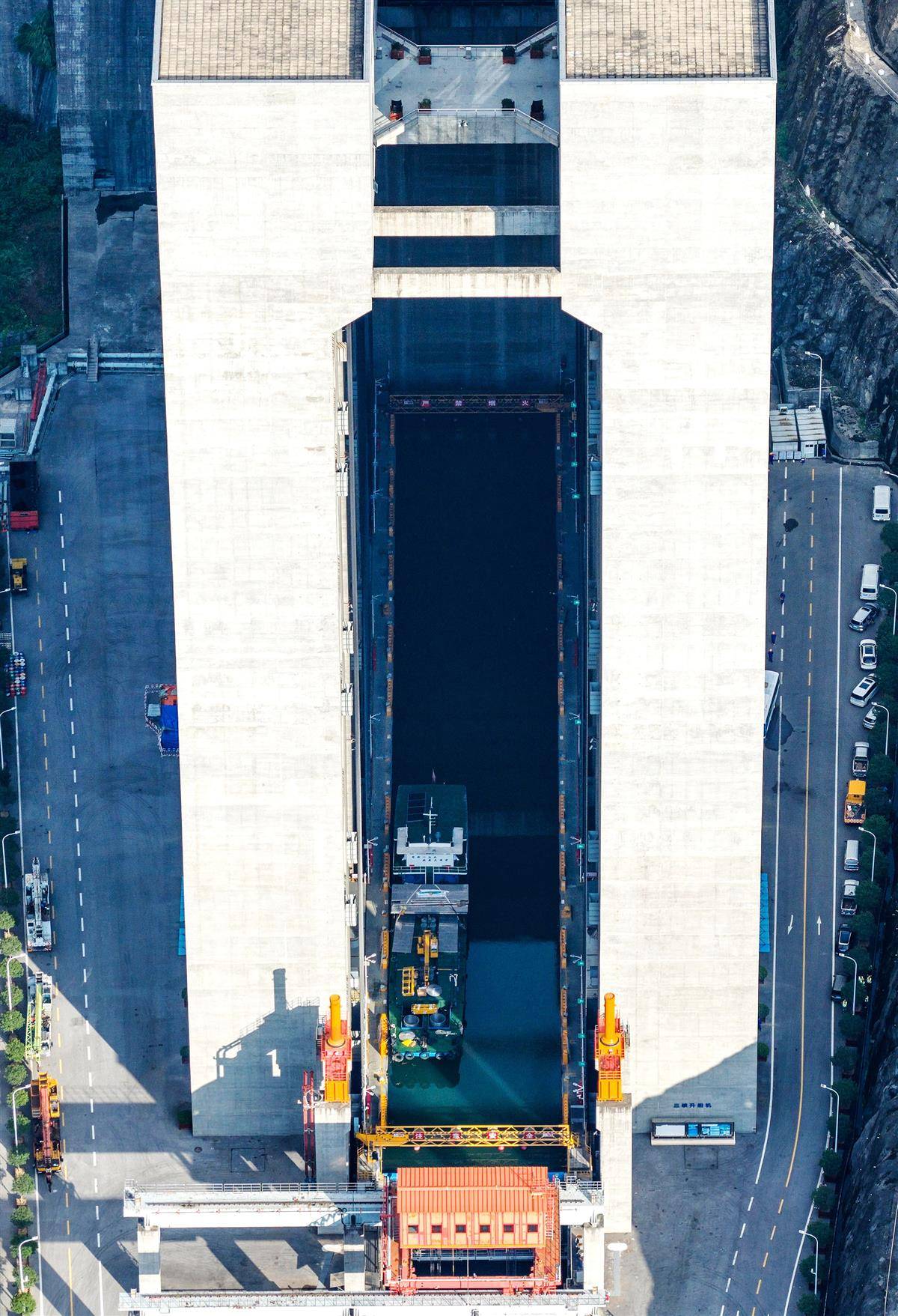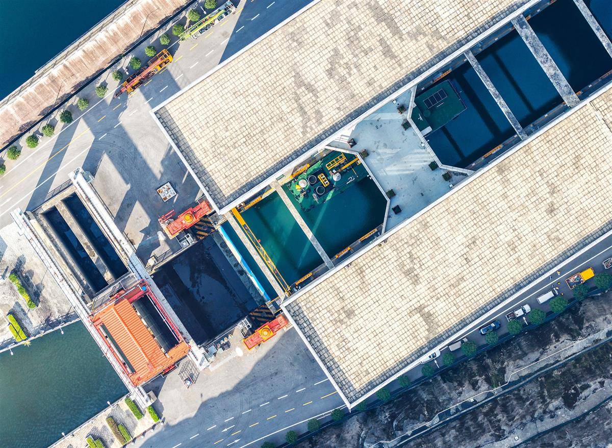 停航检修中的三峡升船机。