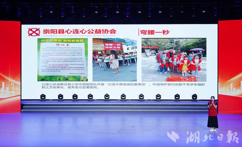 经过激烈角逐,崇阳县助残志愿者协会的《圆梦行动》,凭借汇聚社会公益力量、上门帮扶残疾人的“大爱”举措获得一等奖,高枧乡巾帼志愿服务队的《巾帼她力量 枧上点灯人》、崇阳县政务服务中心的《桃溪帮办》荣获二等奖,崇阳县心连心公益协会的《弯腰一秒 拾起文明》、崇阳县青年志愿者协会的《青“崇”花开》、天城镇蛤蟆石村志愿服务队的《乡村屋顶武术队——蛤蟆石村的璀璨新星》荣获三等奖。