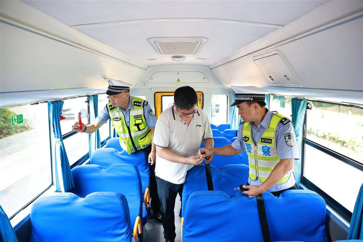 8月26日,武汉市公安局硚口区分局交通管理大队民警为辖区校车进行“体检”,对学校门口的交通标志标线、隔离护栏等安全设施进行逐一排查清理。新学期开学在即,硚口交警提前谋划,针对全区145所中小学、幼儿园校园周边交通状况,优化警力部署,充分发挥“家、校、警”联动的效能,依托“护学岗”加强早晚高峰时段的交通疏导,为新学期校园营造安全有序的交通环境。(湖北日报全媒记者 魏铼 通讯员 杜泽文 摄)