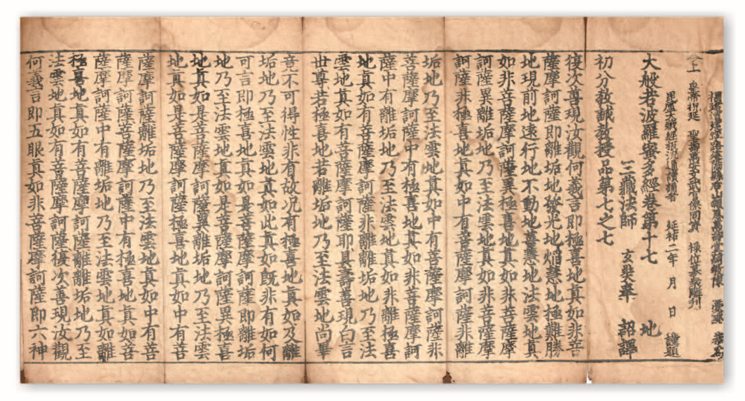 大般若波罗蜜多经六百卷,唐释玄奘译。元延祐二年(1315年)报恩万寿堂陈觉琳福建刻本。
