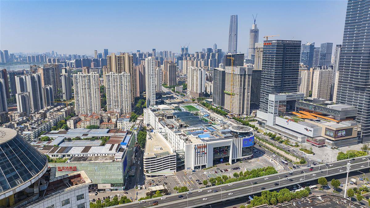 8月27日,鸟瞰武汉徐东商圈,该商圈坐拥徐东大街、友谊大道等主干道,形成地铁4号线、5号线、8号线交会的立体交通网络,辐射汉口、武昌、青山三区。