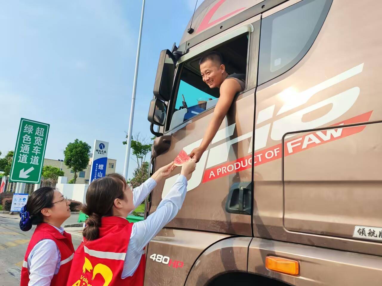 白螺收费站志愿者为司乘送上冰镇绿豆汤