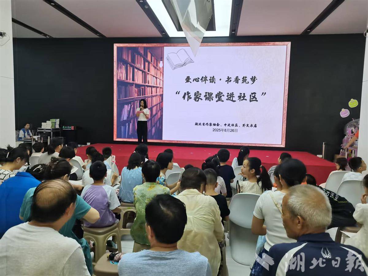 “作家进社区”活动是湖北省作协深入学习贯彻习近平文化思想和党的二十届三中全会精神的具体实践。自2020年以来,省作协坚持彰显专业优势,组织作家进社区,开展文学讲座、赠书、中小学生的阅读与写作辅导等文学惠民活动,受到社区干部和居民的欢迎。该活动已成为省作协以优质文学资源服务基层党建的新亮点、新品牌。
