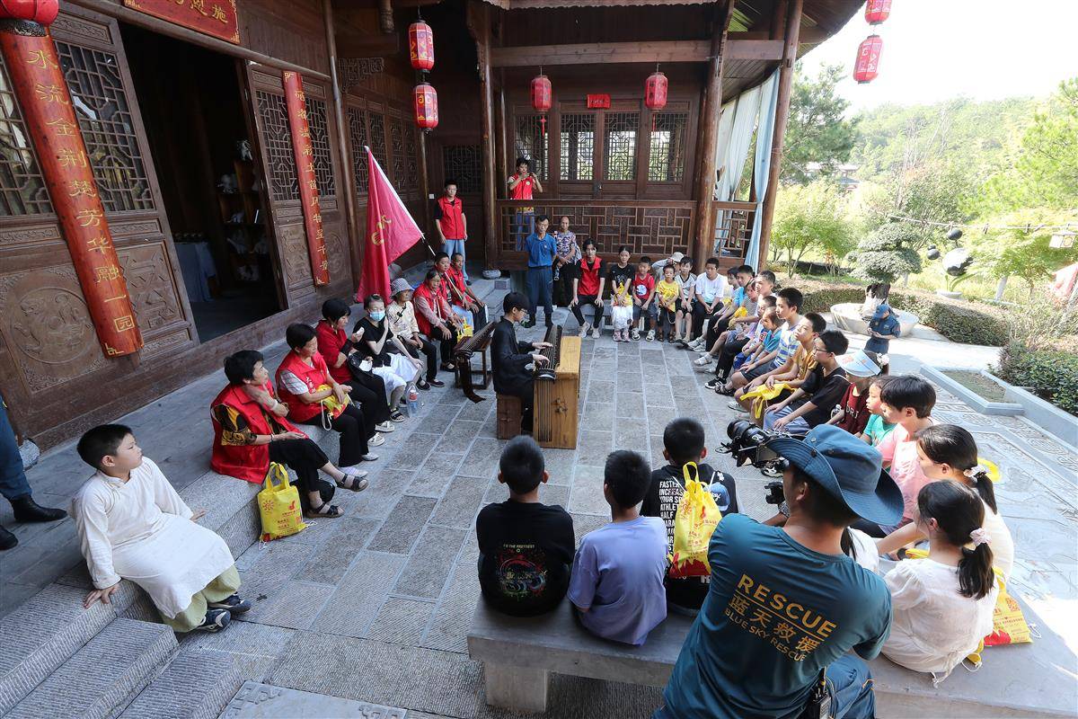 乡村“彩虹行动”爱心托管班的孩子们,在园博园体验古琴表演。