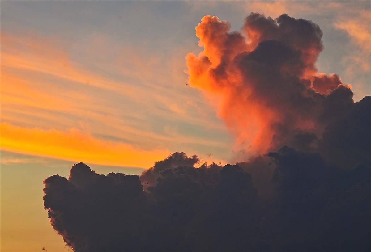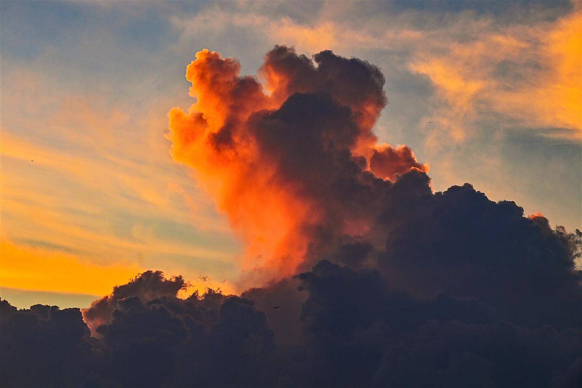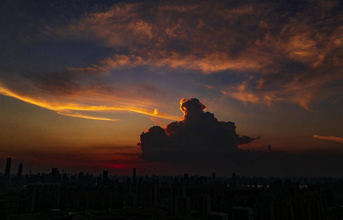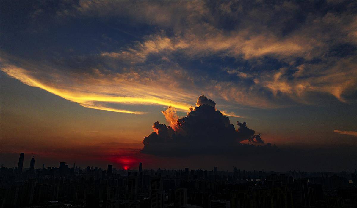 8月27日傍晚,武汉的天空出现一朵巨大的云彩,云彩在天空中快速流动,瞬息万变形态万千,一些市民游客安静悠闲地坐在长江边看云彩变化,不由得赞叹大自然的鬼斧神工。(湖北日报全媒记者 朱熙勇 摄)