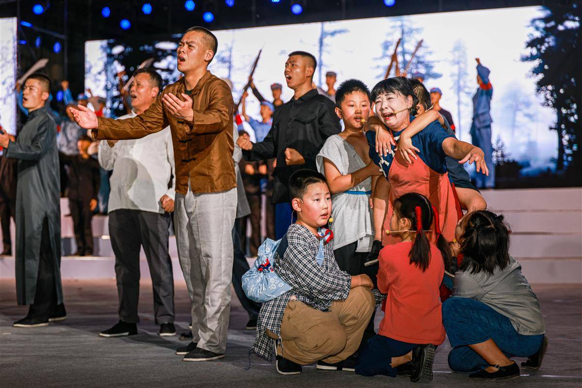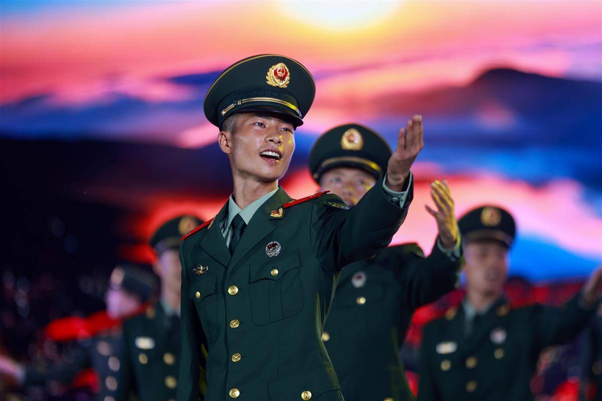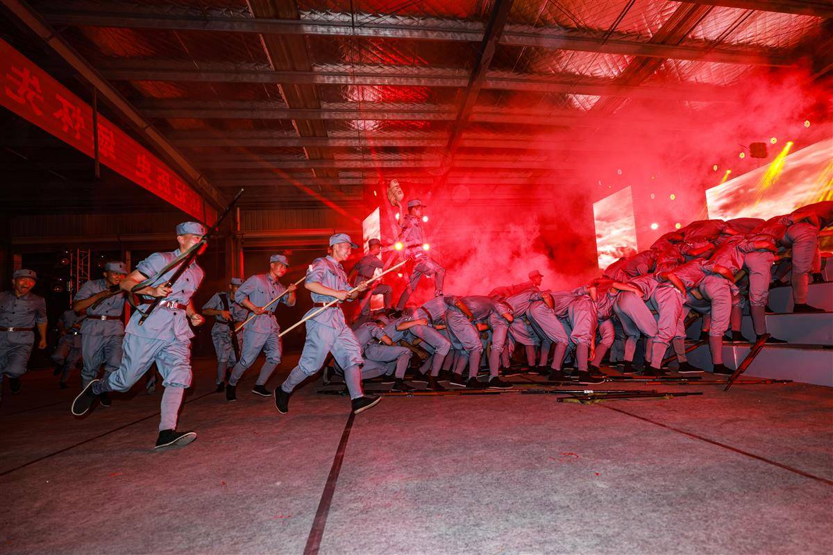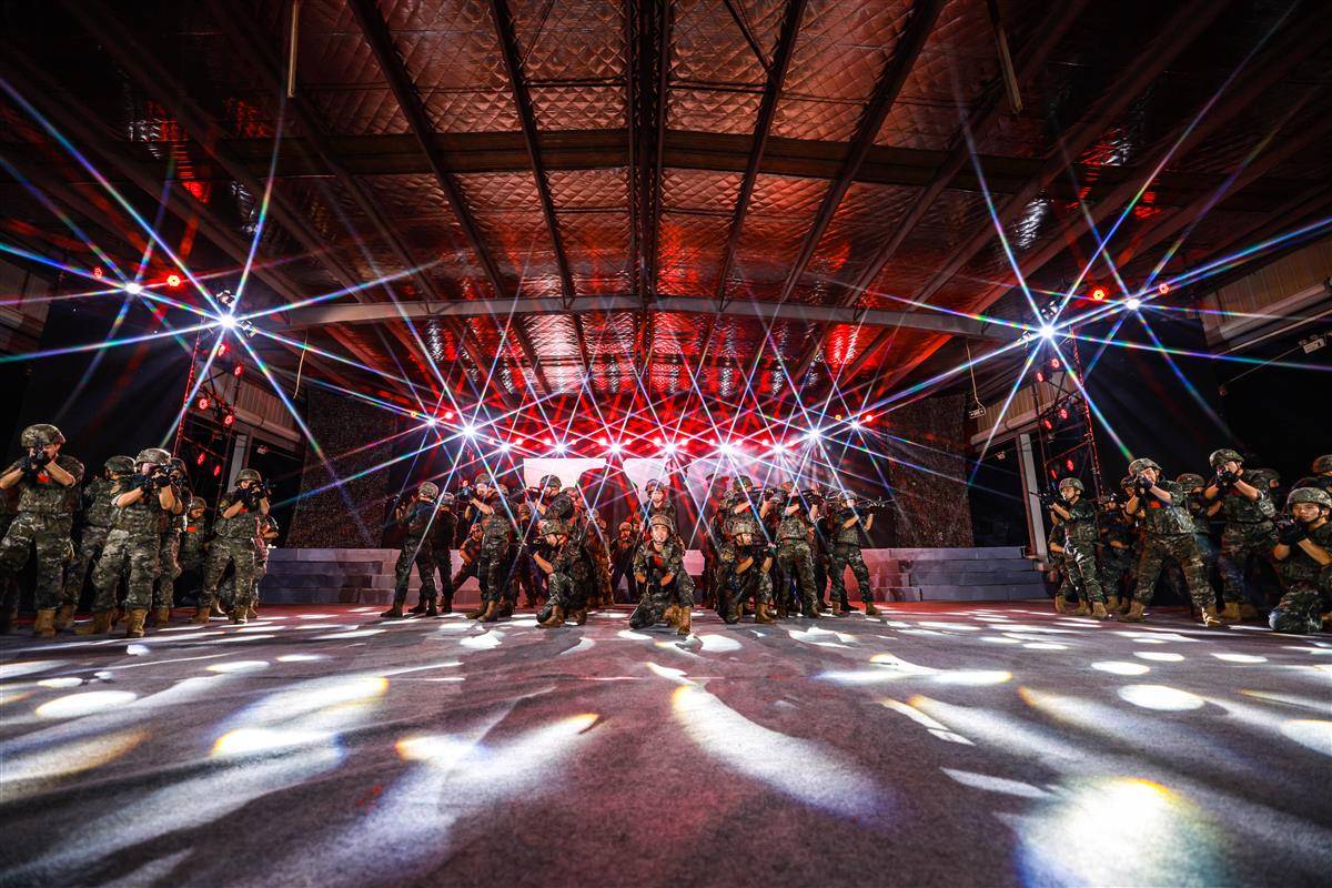 随着冲锋号响起,激昂的《保卫黄河》旋律奏响,瞬间点燃全场的情绪。“风在吼,马在叫,黄河在咆哮!”官兵们一同高唱,歌声如黄河怒涛般汹涌澎湃,唱出了中华儿女在绝境中觉醒的抗争力量。