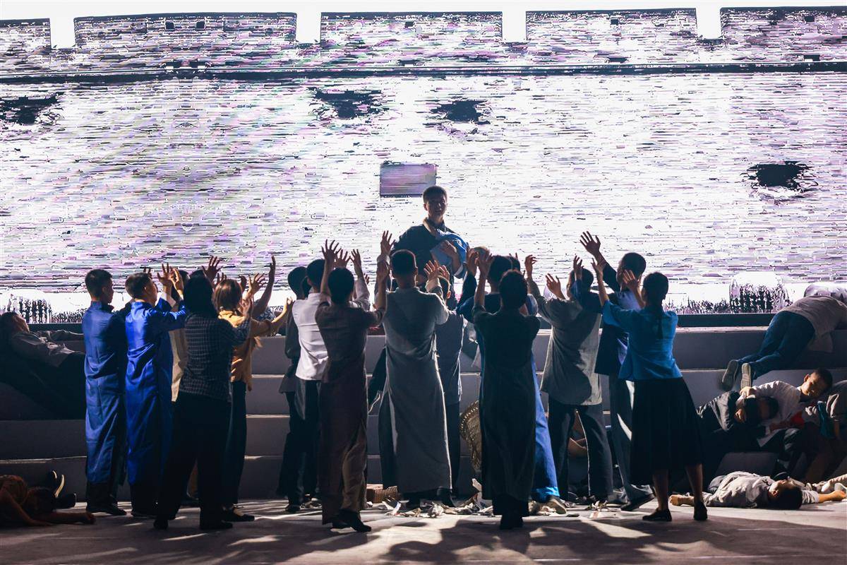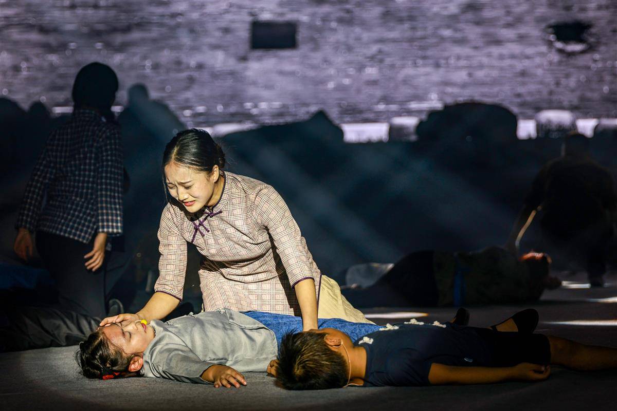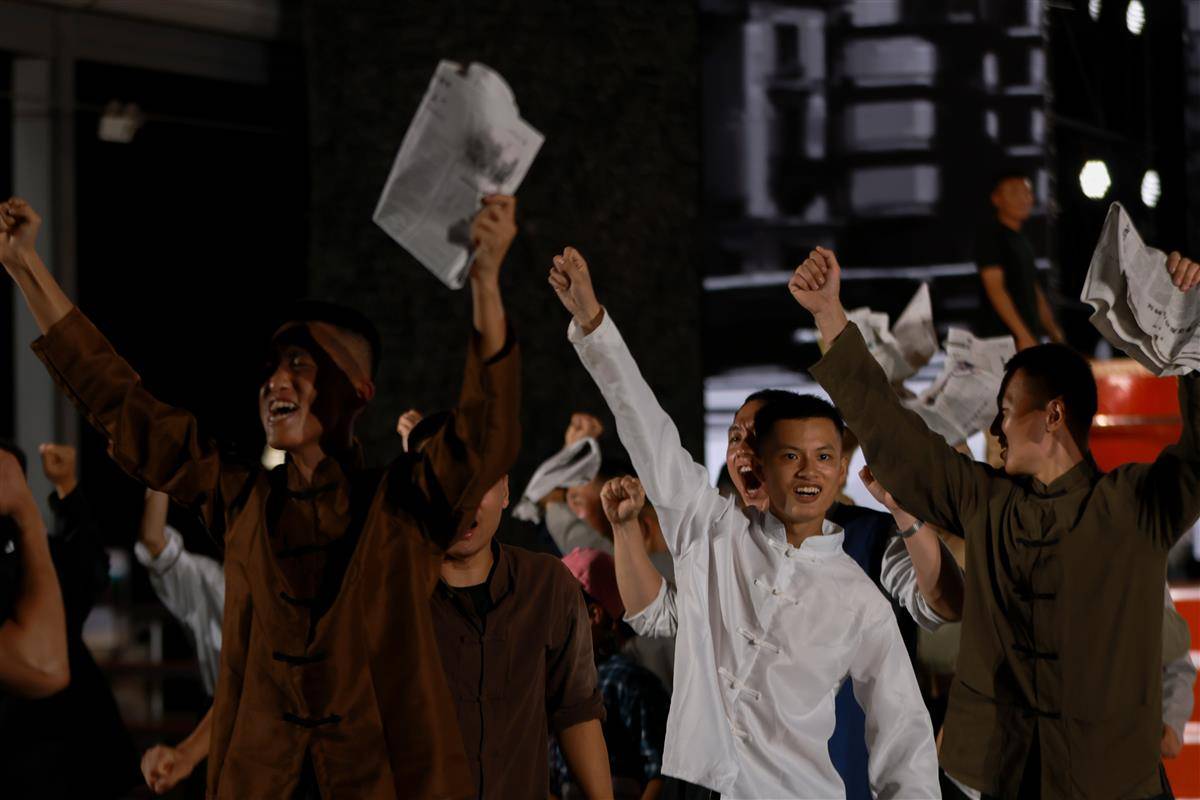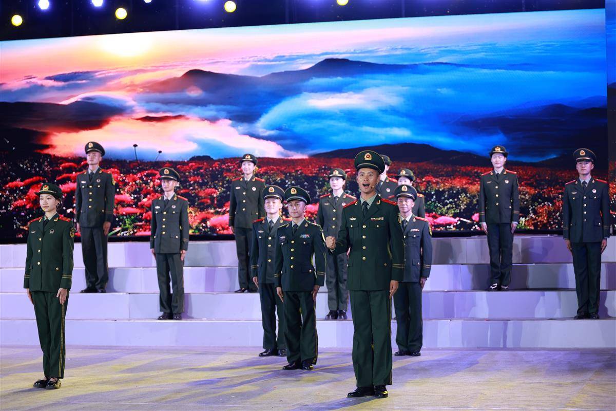 随着冲锋号响起,激昂的《保卫黄河》旋律奏响,瞬间点燃全场的情绪。“风在吼,马在叫,黄河在咆哮!”官兵们一同高唱,歌声如黄河怒涛般汹涌澎湃,唱出了中华儿女在绝境中觉醒的抗争力量。