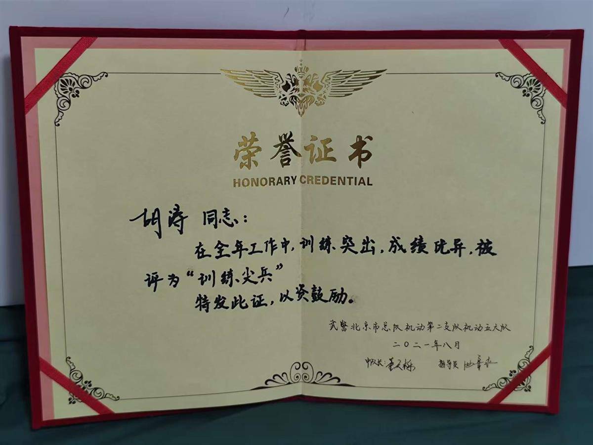 胡涛,2001年出生,2019年9月入伍后服役于武警北京总队机动第二支队。2021年退役后,他通过招考成为一名辅警,完成了从“橄榄绿”到“藏青蓝”的华丽转身,岗位虽变,但军人本色不减,工作中,他积极主动、刻苦钻研,遇急难险重任务总是冲在最前面,多次受到表彰。