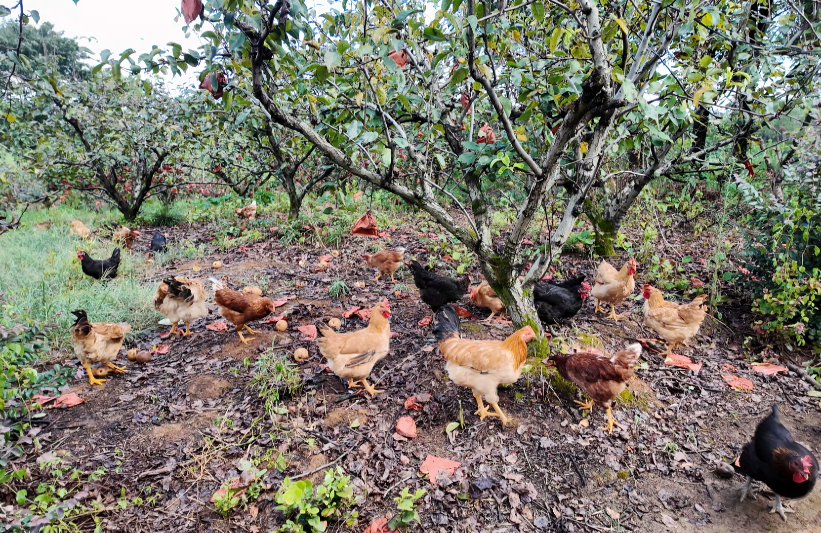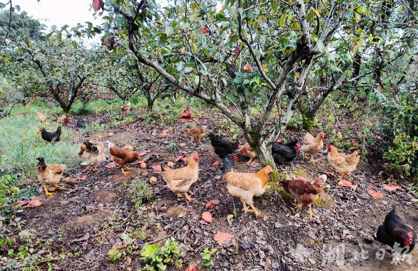 除了果园,农场的“循环经济”同样亮眼。60亩鱼塘里,黄颡鱼等鱼类在清澈水体中自在生长,年产量达10万斤,每斤售价13-14元。这些鲜活水产不仅通过承包模式稳定销往武汉市场,年销售额超100万元,还成了不少游客现场采购的“必选项”;50亩鸡舍、猪棚里,林下散养的土鸡啄食青草和谷物以及树上掉下的梨子、桃子等,肉质紧实鲜美,每年仅养鸡一项就能带来70万-80万元的效益,生态养殖的生猪也是品质上乘。这种“林下种养结合”的模式,既让土地资源得到高效利用,又实现了生态循环,确保每一份农产品都绿色健康。