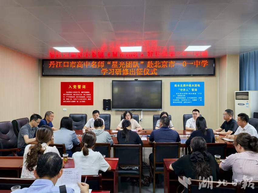 湖北日报客户端讯(通讯员 陈雪 马颖颖)8月29日,丹江口市教育局举行高中名师“星光团队”赴北京一〇一中学学习研修出征仪式,10名优秀教师将前往北京市海淀区开展为期一年的跟岗学习。市领导黄燕出席仪式并讲话。