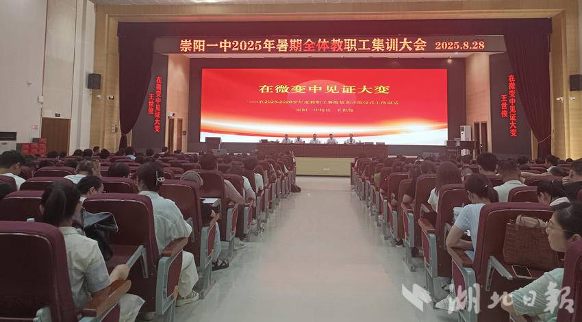 湖北日报客户端讯(通讯员李春)8月28日,为期三天的崇阳一中2025年暑期全体教职工集训在综合楼学术报告厅拉开帷幕。通过系统培训,提升教师队伍专业素养与育人能力,为新学年教育教学改革做好充分准备。
