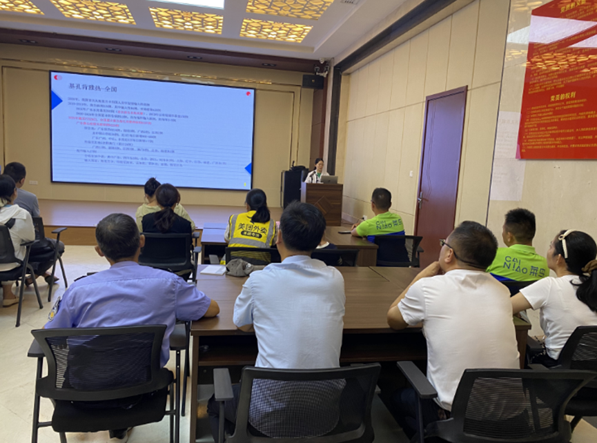 湖北日报讯(通讯员张雪银)8月28日,武汉经开区沌阳街道金域蓝湾社区联合武汉协和医院西院区,在社区户外工作者驿站开展"健康课堂进驿站,夏日防病更安心"健康讲座活动,30余名外卖骑手、快递员、环卫工人、物业人员等户外工作者参与。