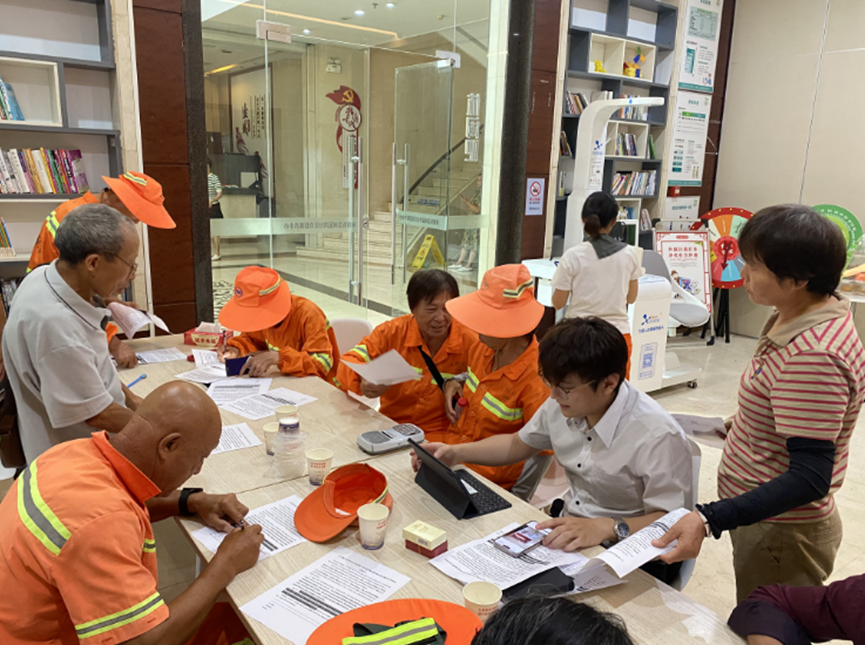 与此同时,驿站另一侧的银行临时服务点也迎来办理业务的户外工作者。银行工作人员现场提供工资卡办理服务,解决了他们因工作时间与银行营业时间冲突而难以办卡的难题。"我们白天、晚上清扫,银行下班我们上班,一直没空去办卡,这样的上门服务太方便了,省去了请假跑银行的时间。"刚办完业务的环卫工肖师傅说。