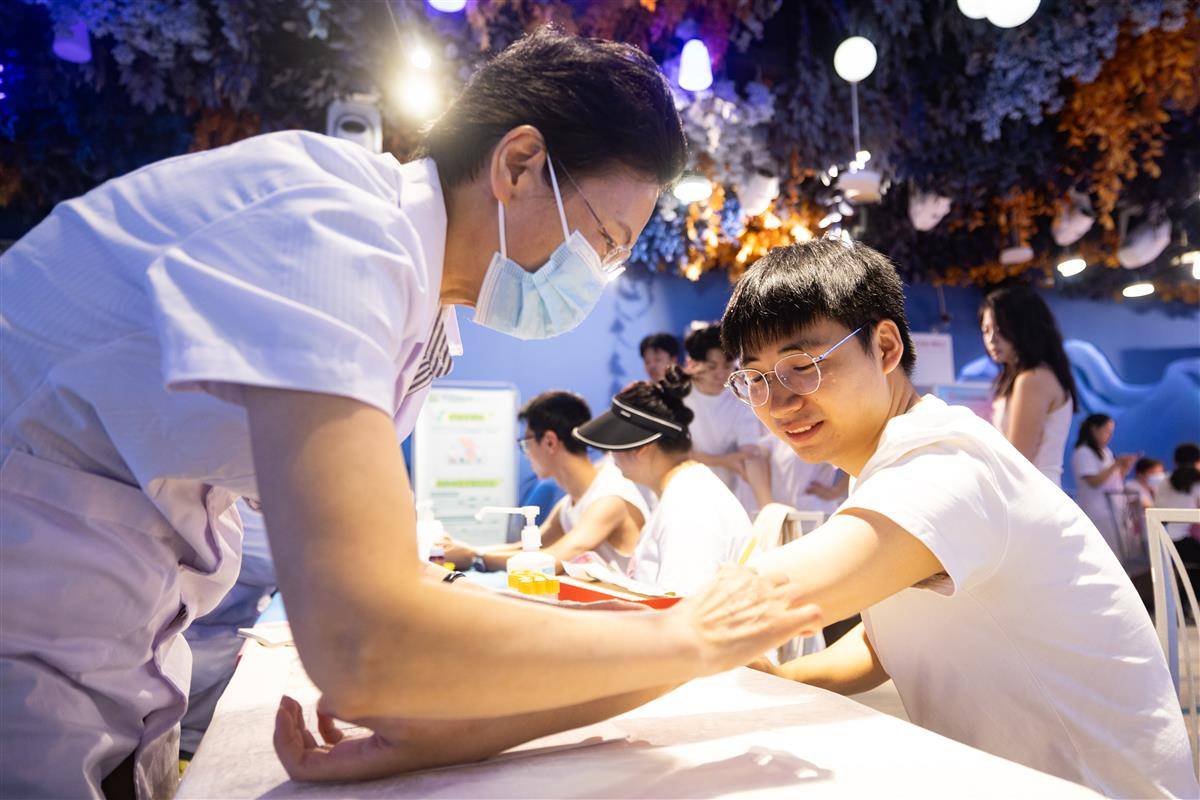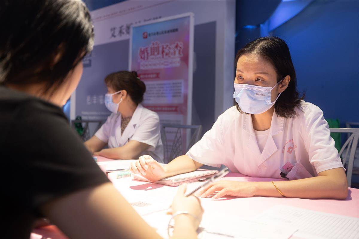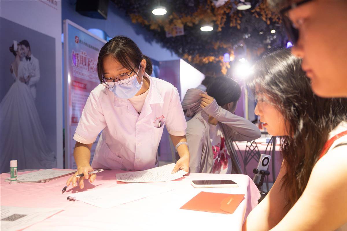 8月29日,武汉市青山区妇幼保健院在青山区民政局婚姻登记处青山江滩结婚登记点开展“七夕映佳偶,婚书证良缘”免费婚检活动。医务人员现场为结婚登记的新人们提供便捷、专业的医学检查服务,传播婚育健康知识,为幸福婚姻保驾护航。(湖北日报全媒记者 何宇欣 通讯员 彭玉英 陈欣悦 摄)