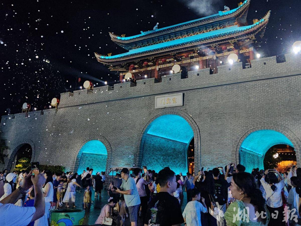 8月27日晚,夜幕降临,荆州古城被绚烂的灯火点亮。不少市民趁着夜色走出家门,感受夜间的轻松和惬意,“活力中国调研行”湖北主题采访团走上街头,感受荆州夜生活。