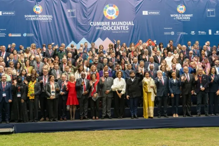 8月28日至29日,首届联合国教科文组织世界教师峰会在位于智利首都圣地亚哥的联合国拉丁美洲和加勒比经济委员会总部举行。其间,16国教育部长和副部长、有关国际组织负责人及教师代表等约400人就改善教师工作条件、人工智能对教师发展影响、创新教育融资策略等主题展开讨论,寻找全球教师短缺问题对策。