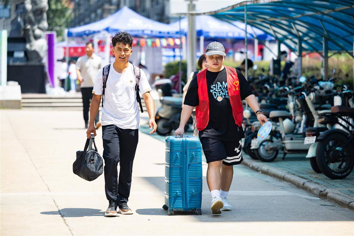 2025年8月30日,华中科技大学迎来2025级本科新生报到。当天武汉气温炎热,校园里依然人头攒动。新生们在家长陪同下走进校门,满怀憧憬地踏上大学校园旅程。身着红马甲的志愿者们顶着酷暑忙碌穿梭,协助搬运行李、指引路线,现场秩序井然,处处洋溢着热烈而温馨的迎新氛围。(湖北日报全媒记者 何宇欣 通讯员 左盈 摄)