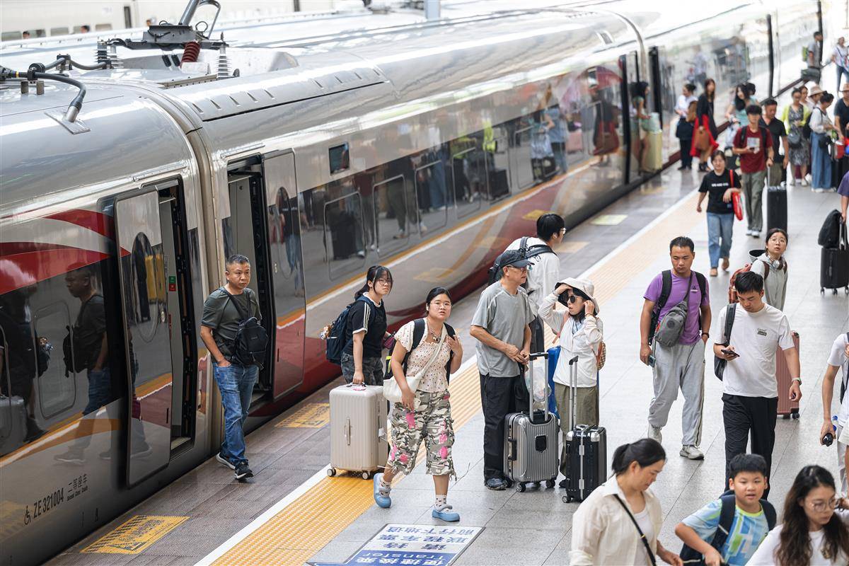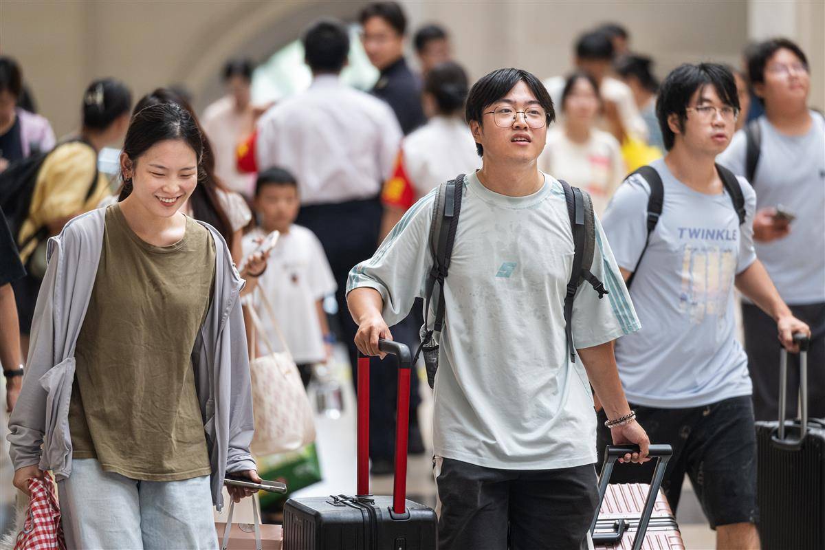 8月30日,旅客抵达汉口火车站。当日,汉口站共到达大学生旅客15,513人。(湖北日报全媒记者 任勇 摄)
