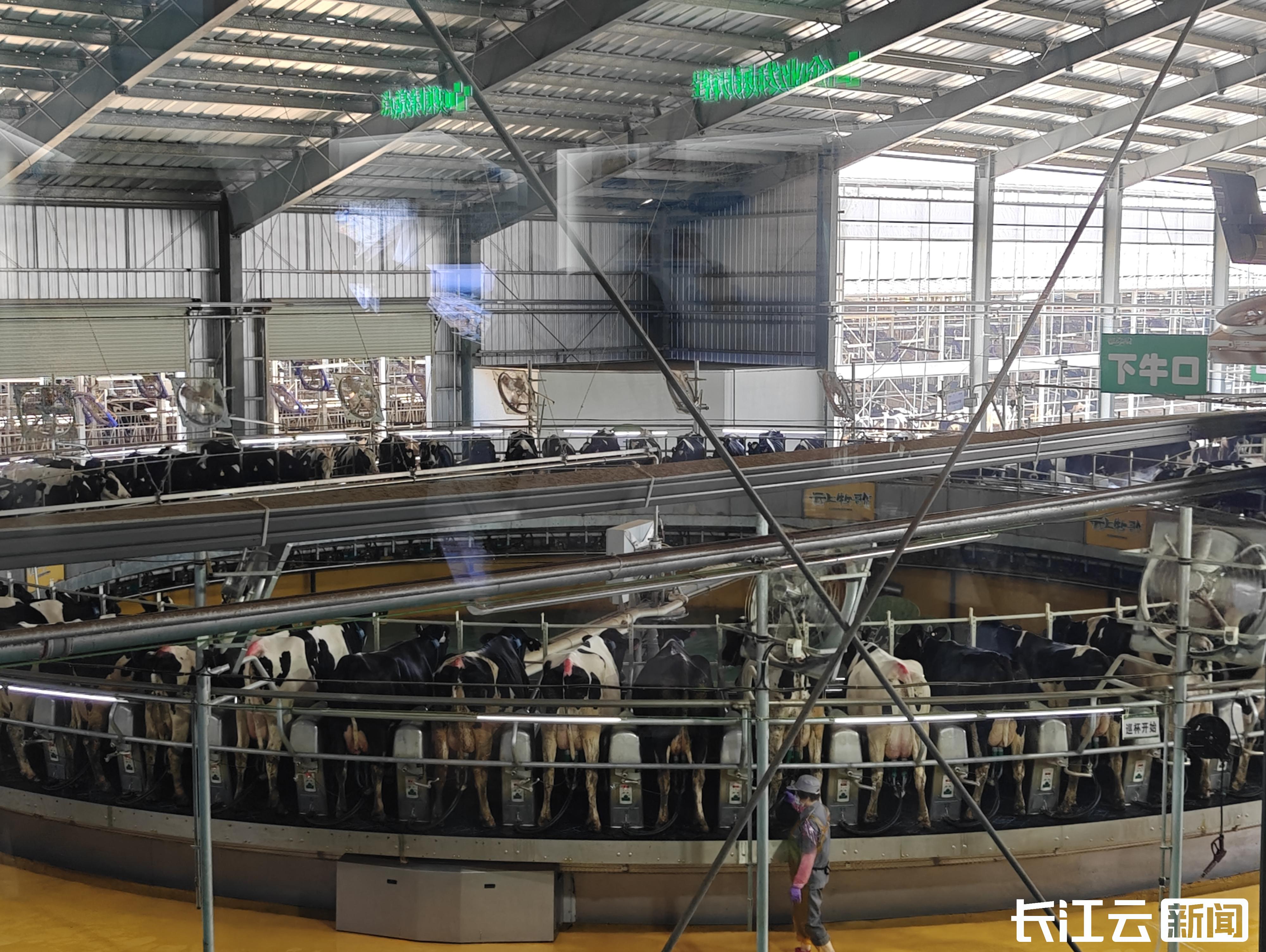 月28日,2025年“活力中国调研行”湖北主题采访记者团走进南漳县九集镇1200亩的云上牧歌万头奶牛智慧产业园,长江云新闻记者在现场看到,80位转盘式挤奶机缓缓启动,上千头奶牛依次排队挤奶,鲜奶顺着管道4分钟内降至4℃。据悉,这些鲜奶经三层过滤注入保温罐车后,会直奔300多公里外的蒙牛武汉加工厂。