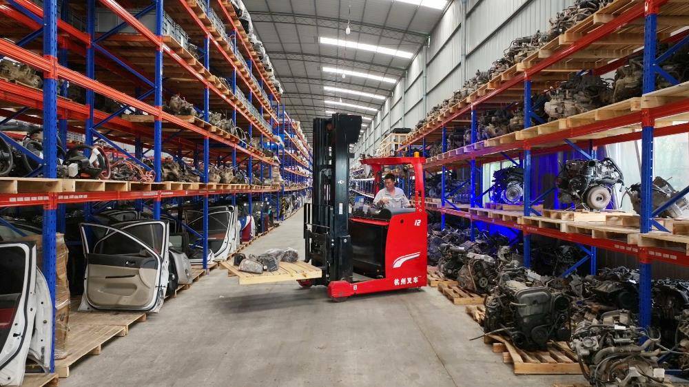 ▲重庆弘喜汽车科技有限责任公司库房内,工人正在堆放回收的高价值汽车零部件。摄/王浪