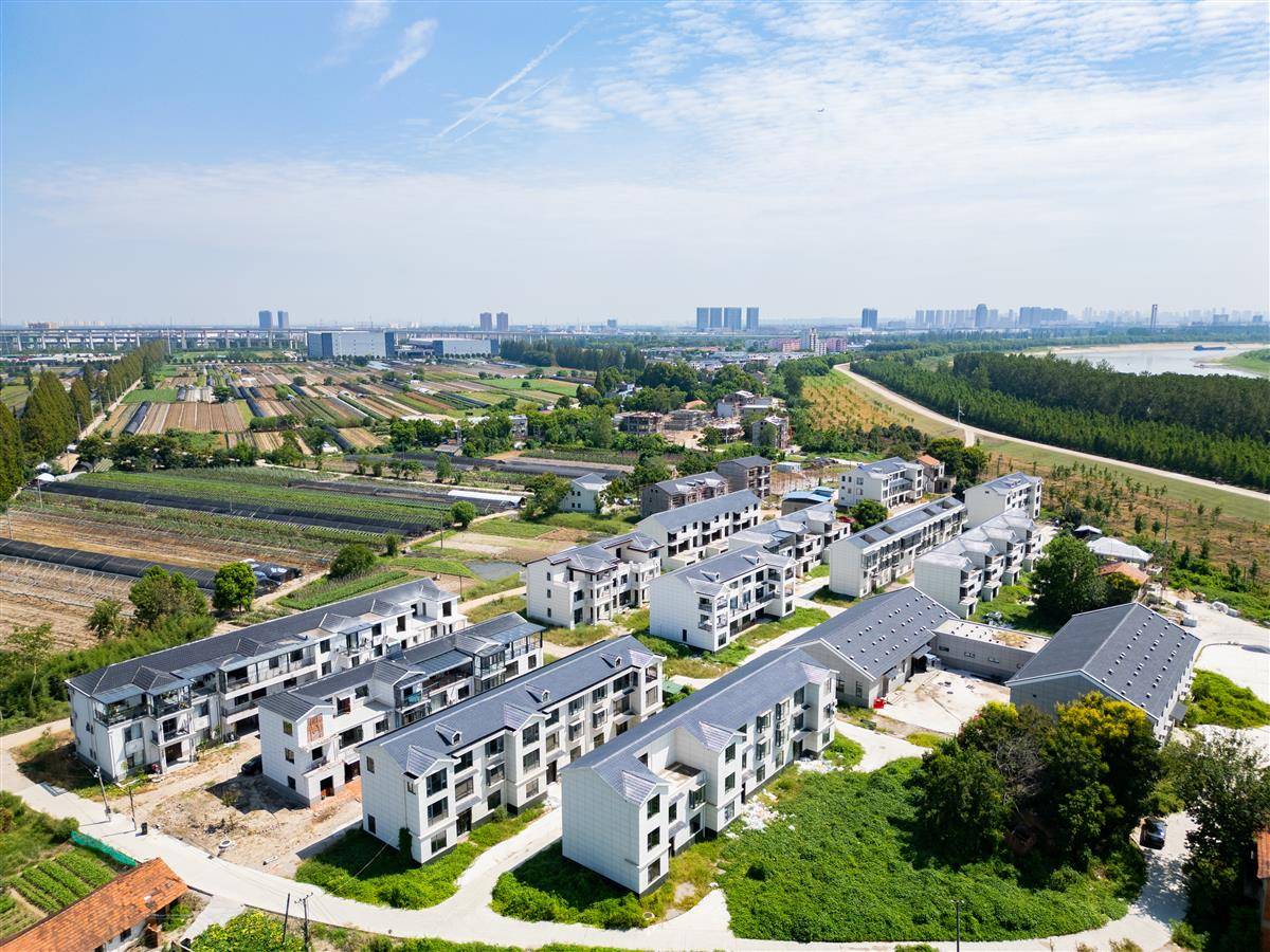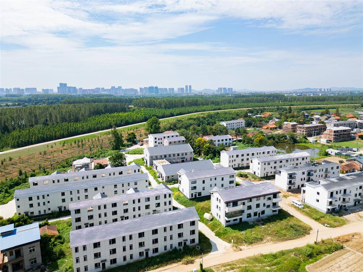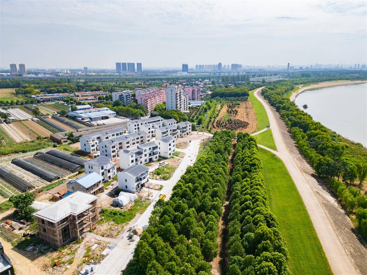 2025年8月26日,空中航拍正在建设中的武汉市东西湖区走马岭街沿汉江村湾集并工程。近日,东西湖区走马岭街沿汉江村湾集并工程取得阶段性成果:青锋自建区102户规划中63户竣工,六合自建区70户规划中40户竣工,剩余工程将于年底交付。滨江花园附近道路管网工程进度达95%,10月底全面竣工。社区优化设计,解决居民出行问题,20余户已装修搬迁。青锋社区协调团购优惠,街道提供租房补贴。自建房提供3种户型,引导打造小花园。走马岭街整合资源,推进乡村振兴,打造宜居新社区。(湖北日报全媒记者 倪娜 通讯员 蔡倩 晏君 摄)