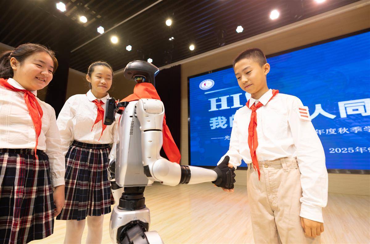 本次开学典礼不仅是新学期的起点,更是光谷十二小在“科技+教育”融合路径上的一次重要实践。学校充分利用光谷区域人工智能产业资源,将前沿科技引入校园,让“适尔少年”在体验中学习,在互动中成长。未来,学校将继续深化科创教育,推动人工智能与教育教学的深度融合,培养具有创新精神和实践能力的新时代少年。(湖北日报全媒记者 何宇欣 通讯员 李厚芬 摄)