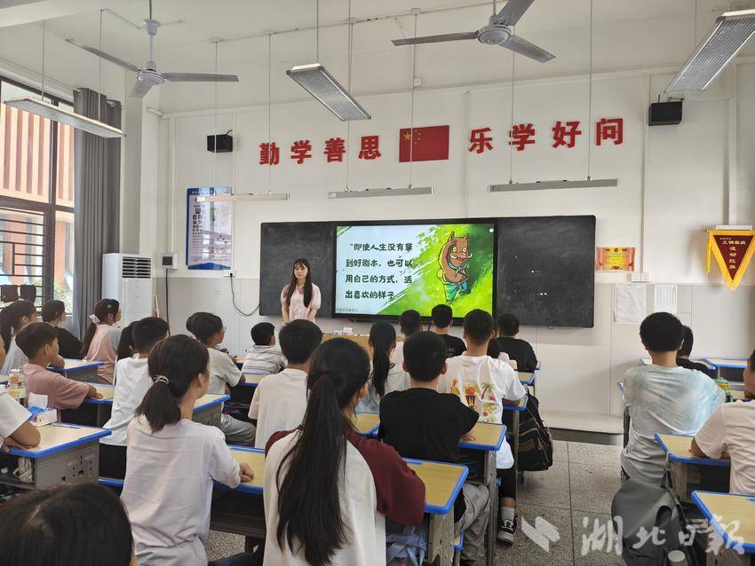 中学段的“开学第一课”,则多了几分“成长感”。在崇阳县环城中学,老师用学生们熟悉的动画《浪浪山小妖怪》打开话题,课堂上,老师引导大家写下新学期目标,再拆解成“每周小任务”,还教大家“如果计划没完成,该怎么灵活调整”;同时,将交通安全知识穿插其中,“学习要努力,安全更要牢记”的叮嘱,让这堂课既有“干货”又有温度。