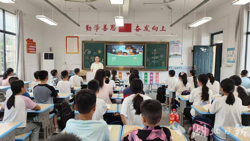 崇阳县实验小学的“开学第一课”,让“新校园”与“爱国情”撞了个满怀。新学期的校园换上了“新装”——干净的操场、明亮的教室,处处透着新鲜感;而课堂上播放的爱国主义教育课件,更让这份新鲜多了温度。孩子们看着课件里的革命先烈故事、祖国发展成就,时而认真点头,时而小声讨论,爱国的种子在潜移默化中悄然发芽。