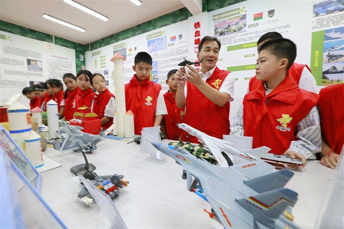 9月1日,新学期第一天,竹山县宝丰镇新茶小学的同学们迎来了一堂特殊的“开学第一课”。作为全国国防教育示范学校,该校组织学生走进校园国防教育展厅,通过沉浸式体验开展国防教育活动,纪念中国人民抗日战争暨世界反法西斯战争胜利80周年。该校负责人表示,选择在开学第一天组织这场活动别有深意:“我们要让同学们明白,开学第一课不仅是学习知识的开始,更要铭记历史、珍惜和平、立志报国。”(视界网 朱本双 摄)