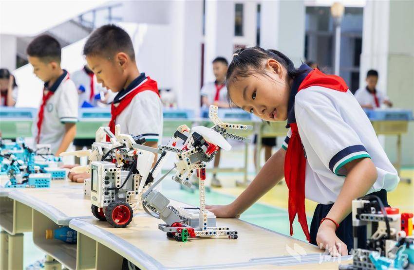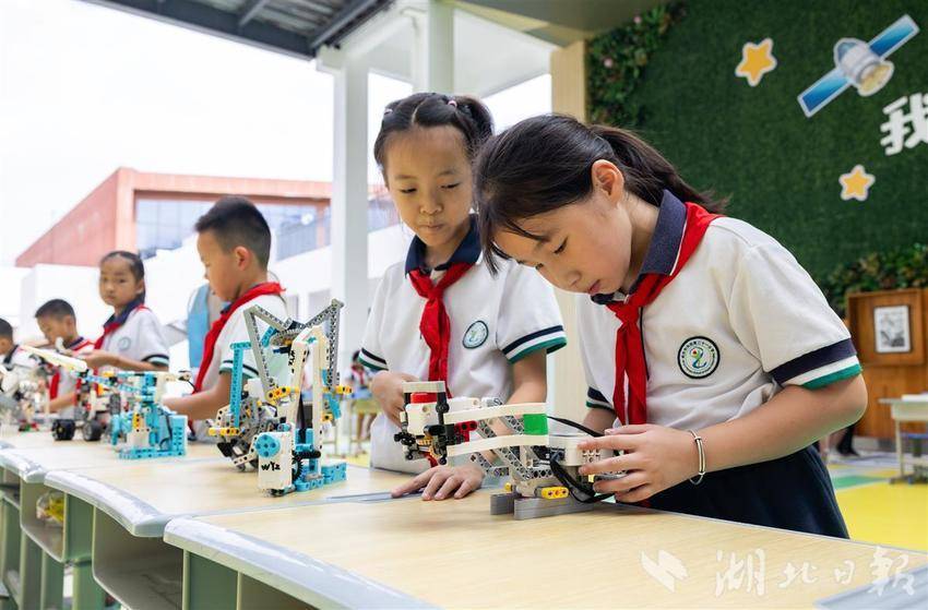 9月1日,武汉市光谷第二十一小学,同学们沉浸在科技实践活动中。
