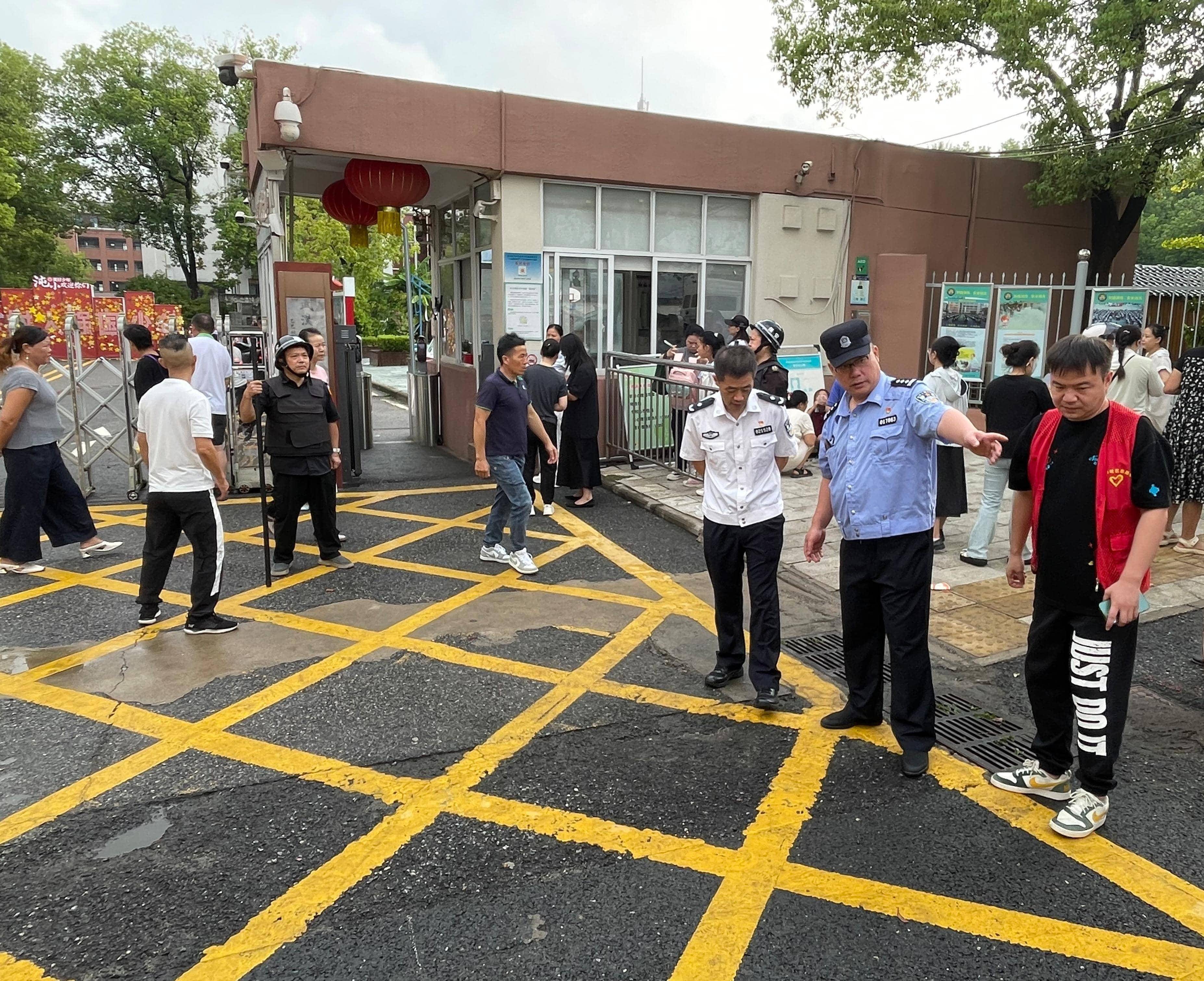 7:00,社区工作人员和民警分工协作。有的值守在学校两侧路口,引导车辆减速慢行、规范停车,护送学生过马路。民警张军动态巡查周边环境,疏导人流车流,处置突发情况,确保交通有序。
