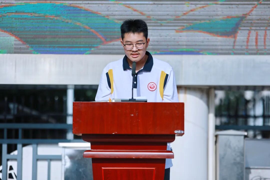 高一(1)班何煜城同学作为新生代表发言,道出了全体高一学子对高中生活的憧憬与担当,展现了新一代江中人的朝气。